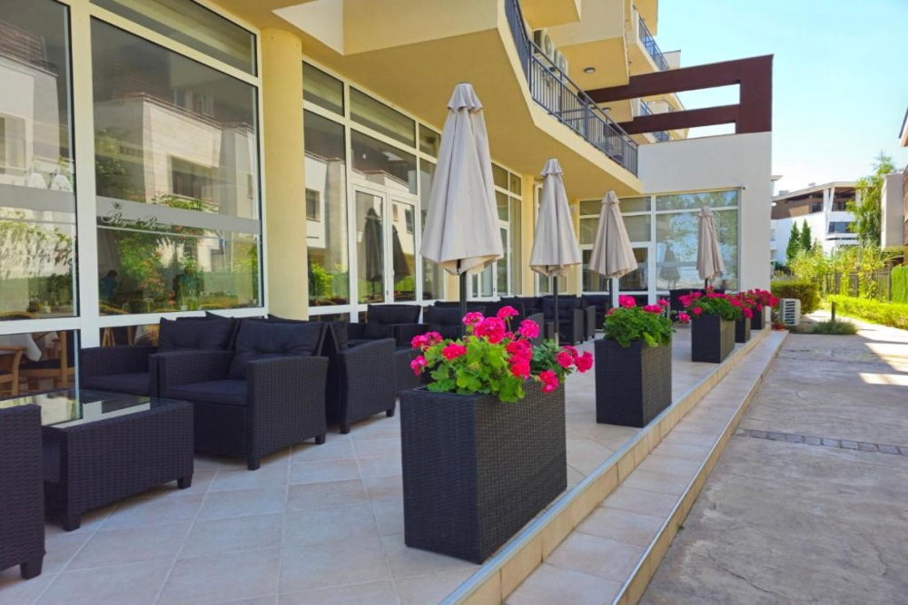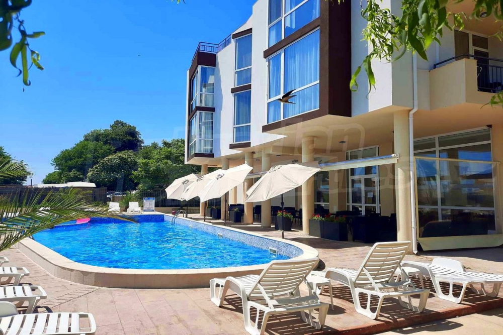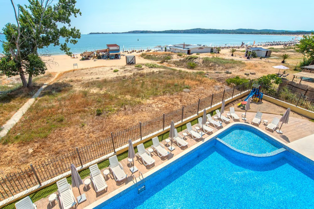 Хотела е разположен на плажната ивица до къмпинг Градина.