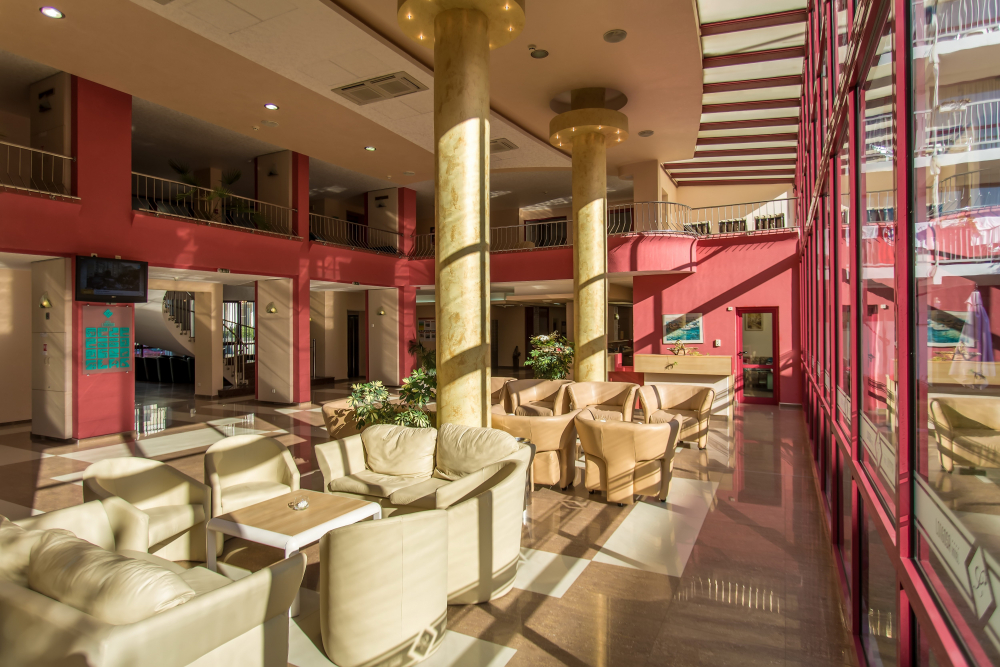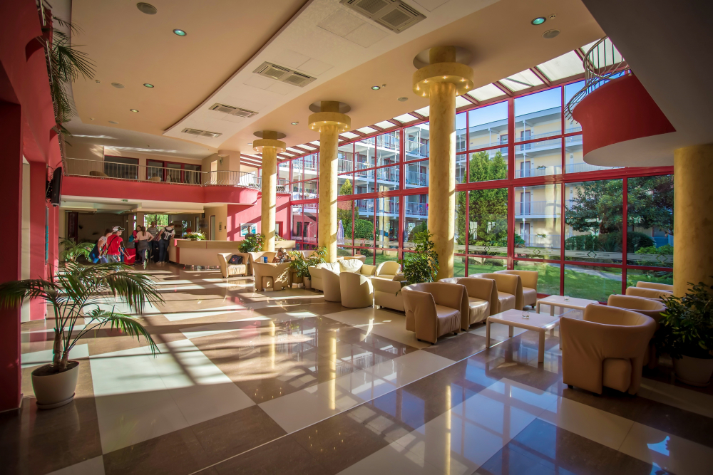 Настаняване: 5 етажната сграда на хотела разполага със 167 стаи и се обслужва от 3 асансьора. През 2025/2026 са реновирани изцяло 61 помещения и предната фасада, освежени са част от общите части.