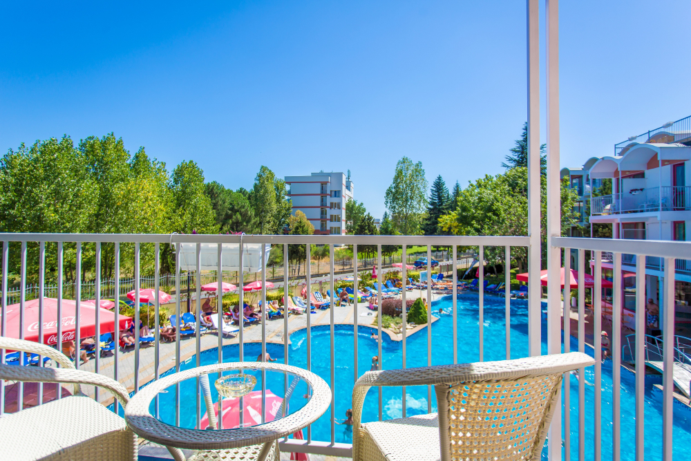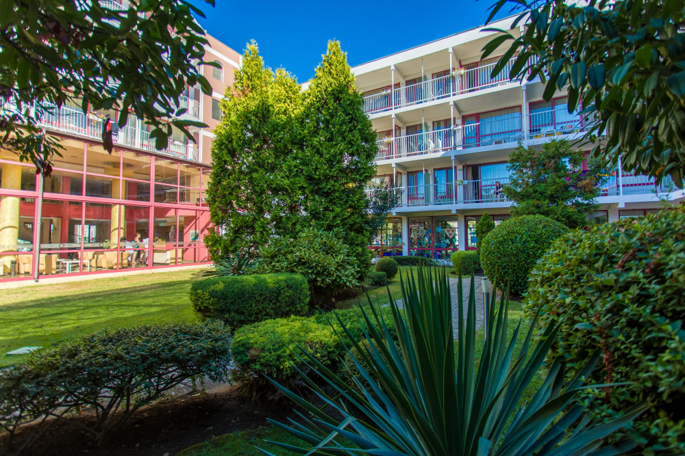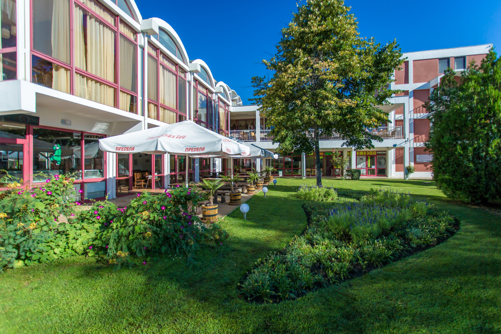 Местоположение: Хотелът се намира в южната част на Слънчев бряг, на 1,5 км от центъра на курорта и на 3 км от старинния Несебър, и на 30 км от летище Бургас.