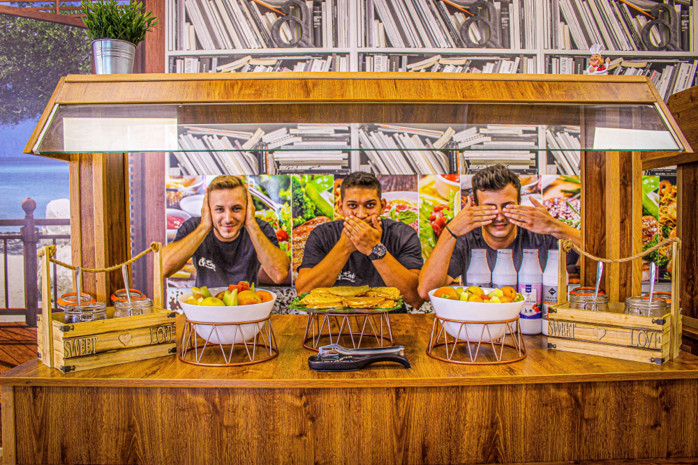 Закуска на блок маса: 08:00 – 10:00 часа (разнообразие от топли и студени ястия, солени и сладки закуски, английска закуска, яйчни специалитети, разнообразни млечни продукти, студени колбаси и сирена, селекция от хлебни изделия, зърнени храни и варива, пресни сезонни плодове, плодови конфитюри, свежи зеленчуци).