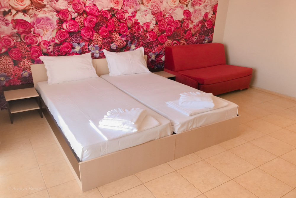 *Не се препоръчва настаняване на 3 –ти възрастен в стаята, т.к. няма да бъде комфортно настаняването на разтегателен диван.