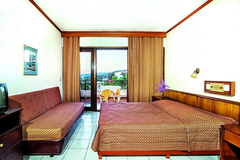 Double Room Side Sea View: 2+1/2+2: Стаите са около 21м 2 ,семпли и удобни с изглед старнично море. Стаите разполагат с балкон или тераса, душ или вана, климатик, хладилник, телефон, телевизор, сателитна телевизия, сейф, сешоар. Максимално настняване на 4-ма възрастни.