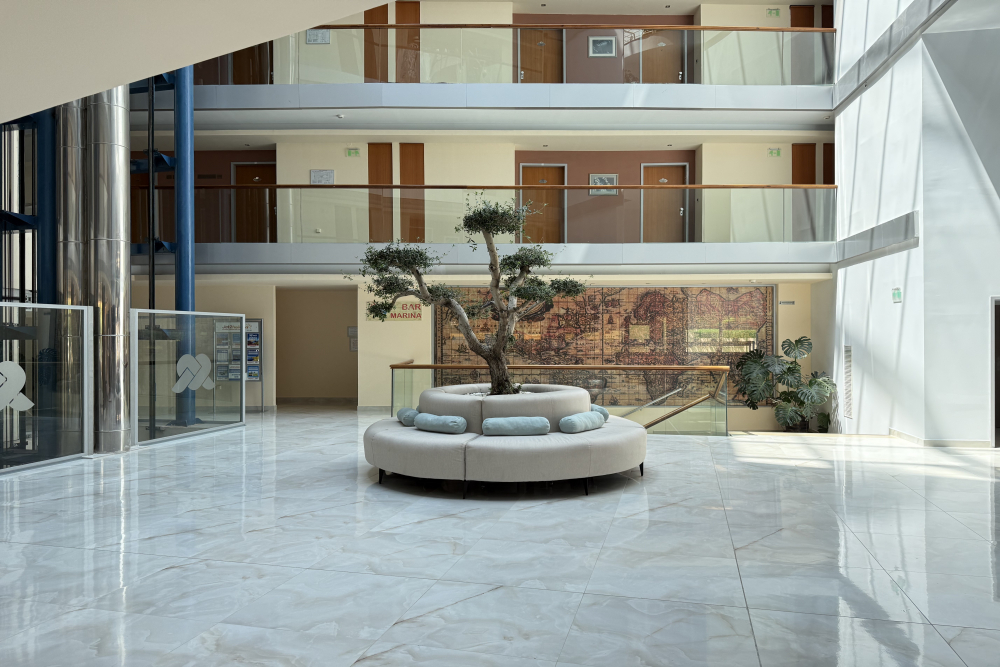 Настаняване: Хотелът разполага с 128 комфортни стаи. За сезон 2025 игралната зала и фитнес залата бяха напълно реновирани, а за новия сезон 2026 всичко ще бъде реновирано - стаи, балкони, коридори, ресторант, Sky bar и лоби. Ще бъде открита нова станция за самообслужване с нощни закуски и напитки.