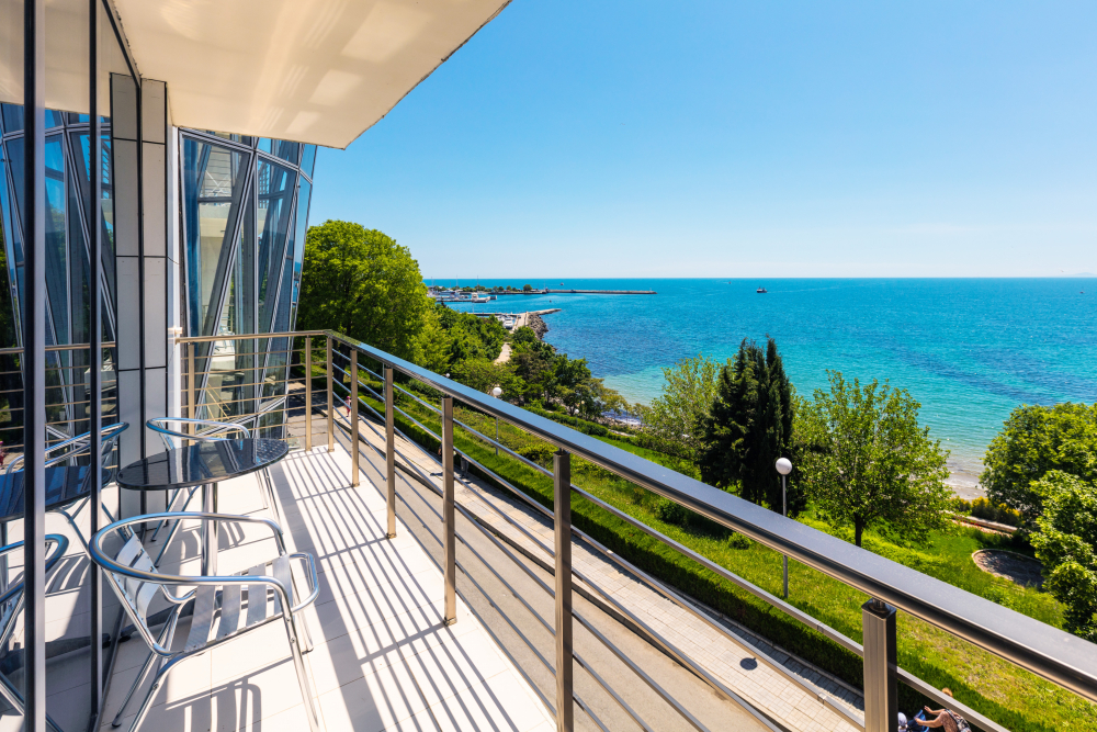 ДВОЙНА 2+1 ДЕЛУКС ЧАСТ.МОРЕ: Приблизителна площ 28 м2. Стаята разполага с едно голямо двойно легло или две стандартни легла и едно допълнително легло (единичен диван-легло). Всички стаи разполагат с климатик, сейф, телефон, мини бар (първоначалното съдържание е безплатно, дозареждане по заявка), сешоар, телевизор с плосък екран, кафемашина и електрическа кана, уреди за гладене, модерна баня с душ кабина и тоалетна, обзаведен балкон.